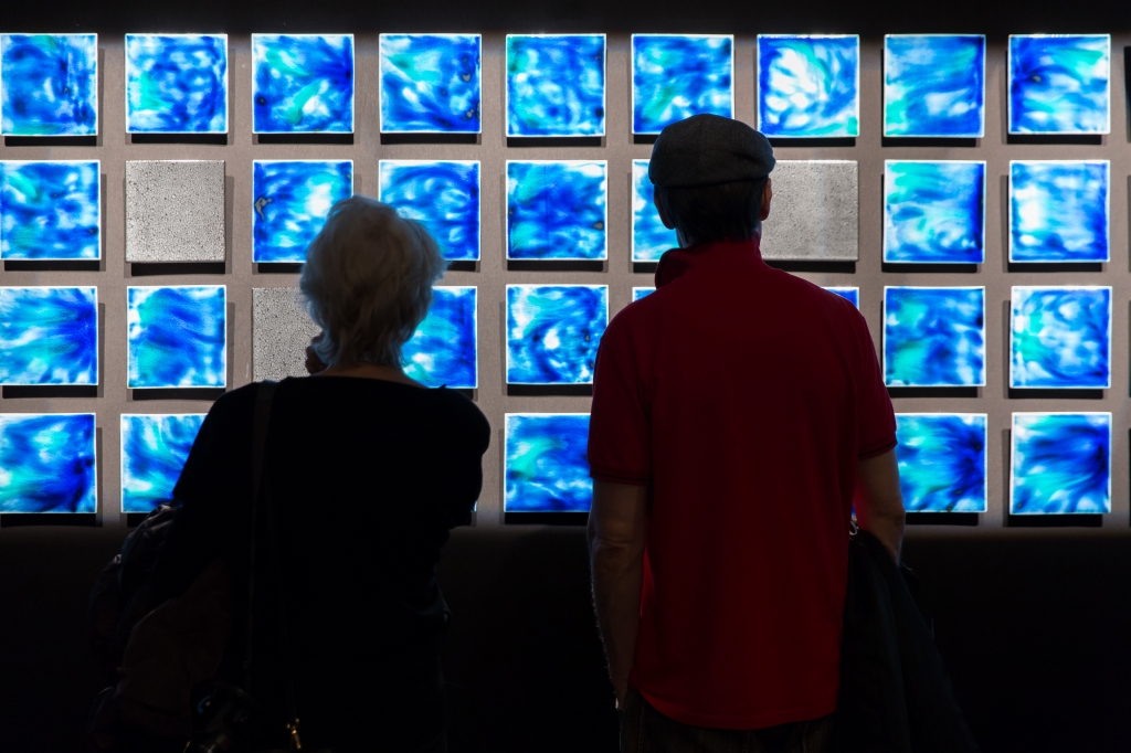 48年前、ガラスと陶器の融合は異色であり、非常に珍しい焼き物でした。人間は現状の生活や価値観を変えられる時、違和感を覚え、それに反発します。しかし、一度理解され始めるとそれは感動へと変化していくものです。また、その時に理解されない方でも、やがて一般に受入られ、有名人や有名レストランで使用されると、一変してその物が良く見えてくるものです。50年前はまだ磁器が世界中で主流であり、日本でも陶器や磁器が使用されていましたが、陶器とガラスの融合は皆無でした。今はタヒチやニューカレドニアそして沖縄等マリンブルーやエメラルドグリーンの海を見てそのような海が存在する事を知っている人は多く、テレビでも最高の画質で自分がビーチにいる様な錯覚をしてしまう程素晴らしい画質で南国の海を見る事が出来ます。当時はガラスと陶器の融合を邪道などと思う人も多く、海の色自体を否定する人も多くいました。現在では金属から色々な色が発色する事は理解されておりますが、当時は鉱石からの発色など、発色する事自体嘘と言われる始末でした。石垣焼窯元ギャラリーを年間10万人の観光客が訪れますが、お部屋のインテリアや特別なお客さまへのテーブルウエアーとして購入して行く方が多くいて、嬉しい限りです。