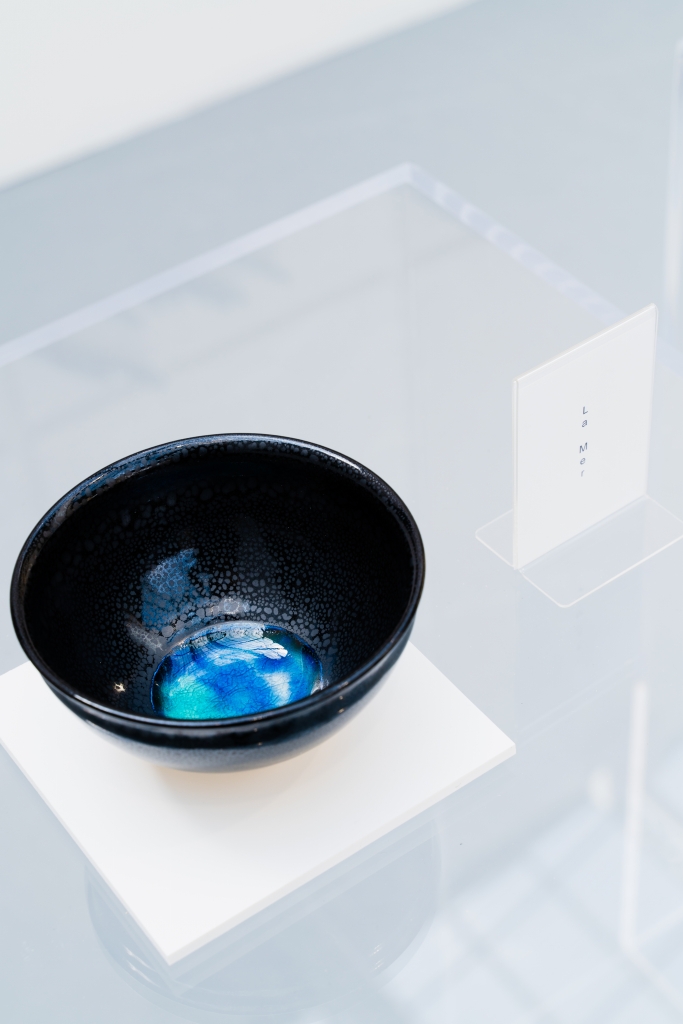 私が4歳の時に父と出会った器の中には太陽の下、沖縄の海が燦燦と輝いておりました。それはひとり陸揚げされているサバニ(小舟)に座って燦燦と照りつく太陽の光を浴びた、人が誰もいない真っ白な砂浜とブルーの海の中を眺めている情景と同じでした。現在一般的となったガラスと陶器の融合は当時邪道といわれ作る方は皆無でしたが、写真家だった父は、この焼き物も次世代の沖縄の焼き物で良いのではと思ったそうで、ここからガラスと陶器の融合の試練が始まりました。